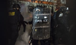 Federal police officers in Portland on 23 July. Photograph: Nathan Howard/Getty Images