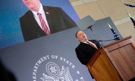 Mike Pompeo speaking at the Richard Nixon Presidential Library in California on 23 July. Photograph: David Swanson/EPA
