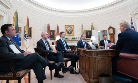 Donald Trump and senior White House staff meeting with Mark Zuckerberg in the Oval Office in September last year. Photograph: Alamy