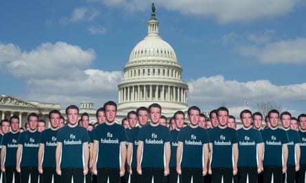 Cutouts of Facebook CEO Mark Zuckerberg placed outside the Capitol in protest ahead of his testimony before a joint hearing of the Senate Judiciary and Commerce Committees in 2018. Photograph: Michael Reynolds/EPA