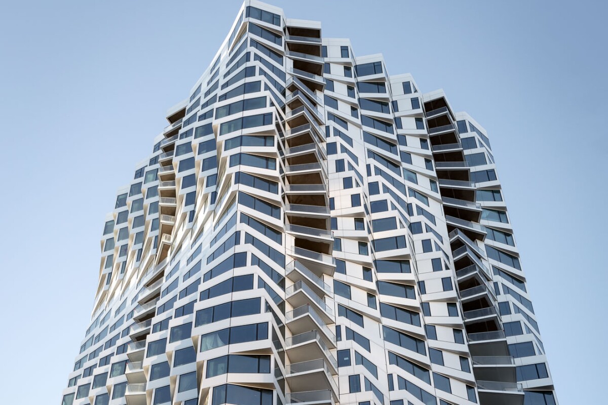 Residents recently began moving into a stunning new luxury tower by Studio Gang. Named Mira, it stands out among San Francisco's busy skyline with an unusual design that twists as it rises to a height of 400 ft (121 m). The project also has sustainable features, such as rainwater collection and greywater recycling.