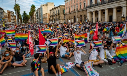 A Pride demonstration in Bari, southern Italy, earlier this month. Far-right politicians have spoken out against the proposed changes in legislation Photograph: NurPhoto/Getty