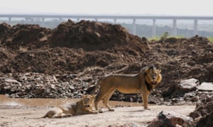 A lion and a lioness inside Nairobi national park. Photograph: Baz Ratner/Reuters