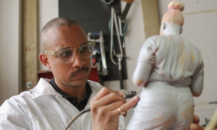 Thomas J Price at work on the original model for Reaching Out. Photograph: Adam Kaleta