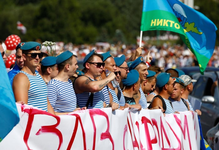 The protest came as the Russian president, Vladimir Putin, told Lukashenko in a phone call on Sunday that Moscow stood ready to provide help in accordance with a collective military pact if necessary.