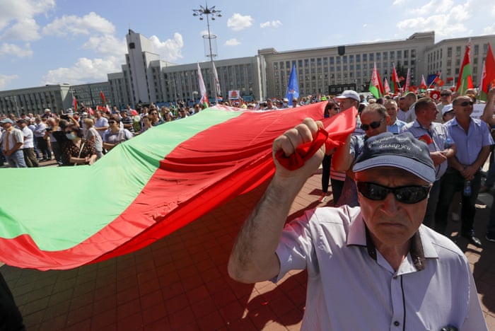 Lukashenko addressed a crowd of several thousand supporters in front of the country’s parliament on Sunday. They waved Belarusian flags and cheered as he said he had no intention of giving up the country, and suggested Nato forces were preparing to invade.