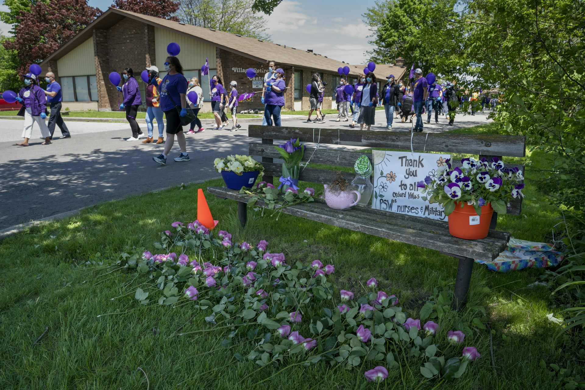 About 150 nursing union members show support for long-term care workers at the Orchard Villa Long-Term Care in Pickering, Ont., in June 2020. The facility was hit hard by COVID-19 infections. THE CANADIAN PRESS/Frank Gunn