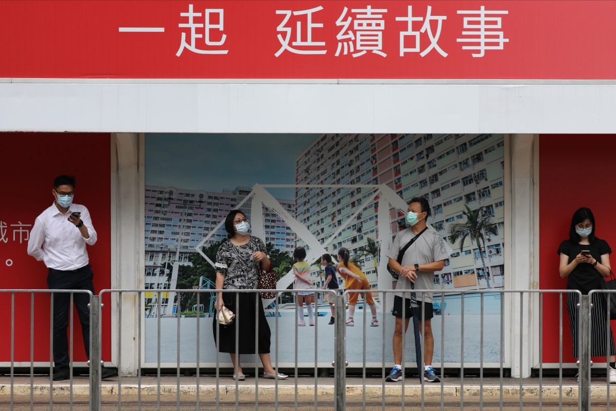 Hongkongers wait for a tram in front of a HSBC advertisement in Central on September 28. Photo: Nora Tam
