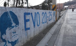 A graffiti of the former president Evo Morales in La Paz. The exiled Morales still overshadows Bolivian politics. Photograph: Juan Karita/AP