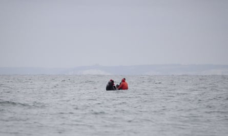 Migrants on a boat in the Channel in August. The total number of asylum applications received by the UK between April and June nearly halved compared with the first three months of the year. Photograph: Sameer Al-Doumy/AFP/Getty Images