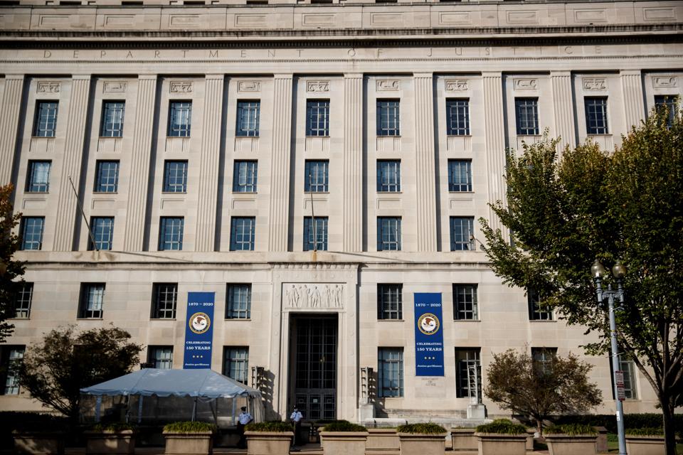 The U.S. Department of Justice building in Washington D.C. (Photo by Ting Shen/Xinhua via Getty) XINHUA NEWS AGENCY/GETTY IMAGES