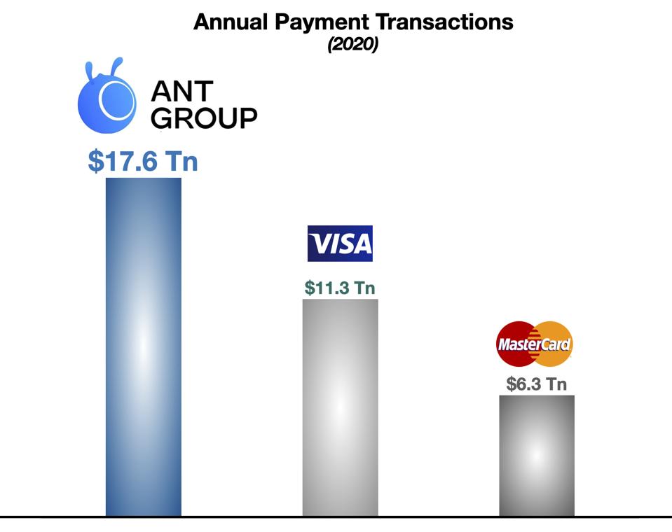 Ant, Visa, Mastercard, Annual Payment Transactions CHART BY AUTHOR