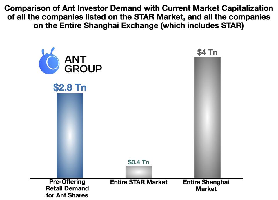 Comparison of Ant Investor Demand with the Market Cap of the entire STAR Market and the Shanghai ... [+] CHART BY AUTHOR