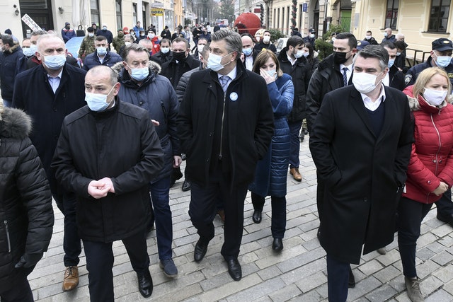 Croatian prime minister Andrej Plenkovic and other government ministers arrived in Petrinja after the earthquake.