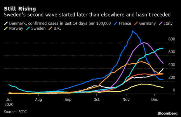 That’s Sineva Ribeiro, the chairwoman of the Swedish Association of Health Professionals, talking to Bloomberg about the “terrible” situation in Sweden as coronavirus infections continue to spread.