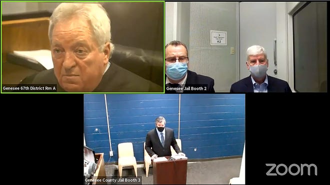 In a remote court appearance Thursday morning whose social distance was necessitated by the novel coronavirus pandemic, Snyder, 62, wore a navy blazer, a light blue collared shirt without a necktie and a gray face mask. He was seated next to his attorney, Brian Lennon, in a Genesee County jail booth as they appeared for the hearing via Zoom. In a separate courtroom, connected by a computer link, a judge presided.