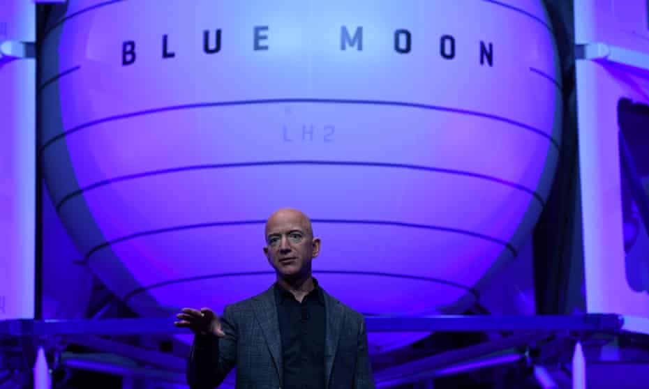 Jeff Bezos unveils Blue Origin’s space exploration moon lander in Washington. Photograph: Clodagh Kilcoyne/Reuters
