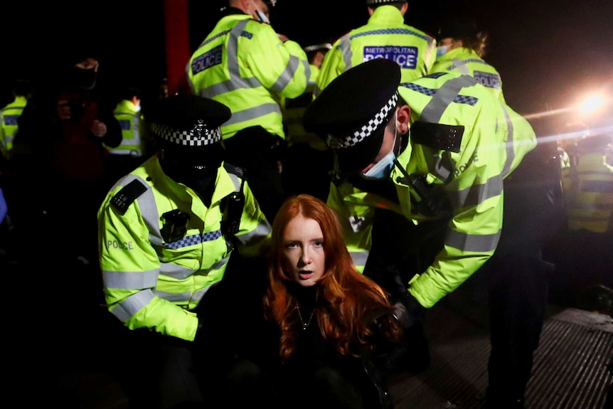 VIDEO Sarah Everard mourners arrested by London police while attending Clapham Common vigil - ABC News