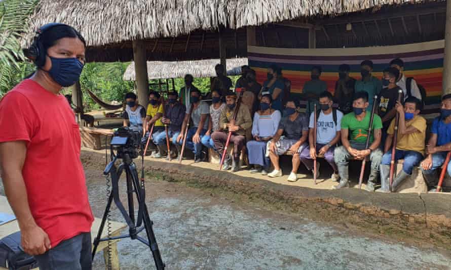 Eriberto working behind the scenes with the Sarayaku people. Photograph: Selvas Producciones