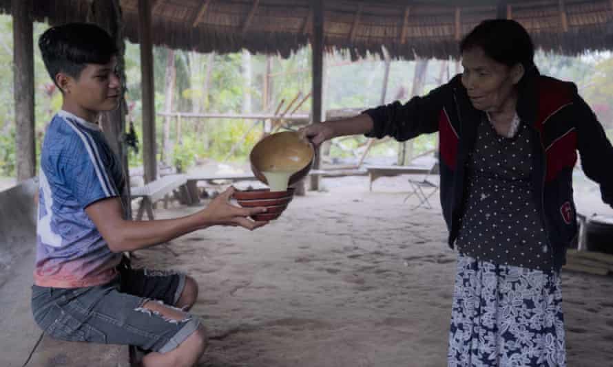 The family went further into the forest to isolate and seek safety as news of the spread of coronavirus reached the village. Photograph: Selvas Producciones
