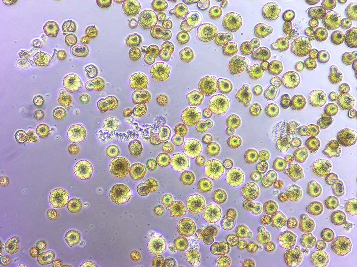IMAGE: THIS IMAGE SHOWS WHAT POLLEN LOOKS LIKE WITH ACINETOBACTER, A GENUS OF BACTERIA COMMON IN FLOWERS. MANY OF THE POLLEN GRAINS ARE GERMINATING AND BURSTING. view more