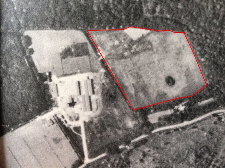 The Monks Wood Wilderness field (outlined in red) shortly after abandonment in the early 1960s. UK Centre for Ecology & Hydrology, Author provided