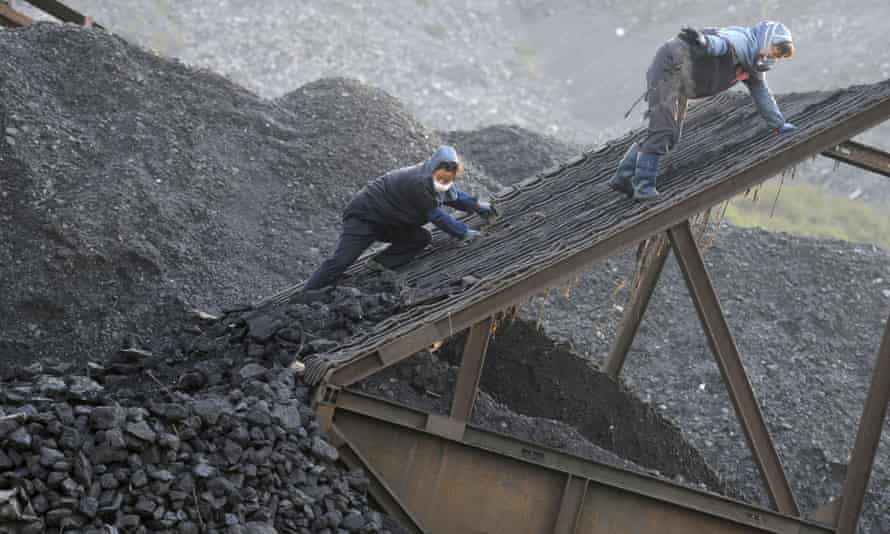 Workers at a coalmine in Huaibei in Anhui province, central China. Photograph: Huang Shi Peng/AP