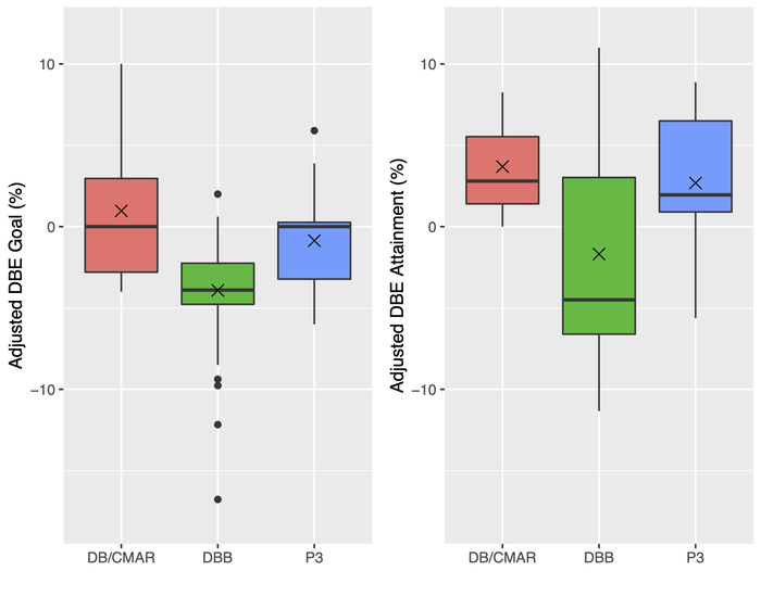 Peer-Reviewed PublicationIMAGE: DISTRIBUTIONS OF ADJUSTED DBE GOAL AND ADJUSTED DBE ATTAINMENT BY DELIVERY METHOD view more