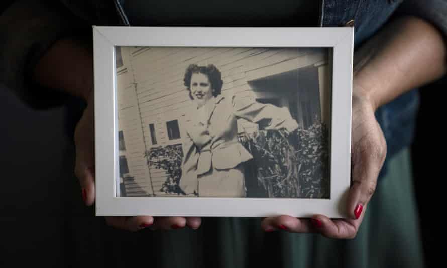 Stacy Cordova, whose aunt was a victim of California’s forced sterilization program that began in 1909, holds a framed photo of her aunt Mary Franco, who was sterilised in the 1930s. Photograph: Jae C Hong/AP