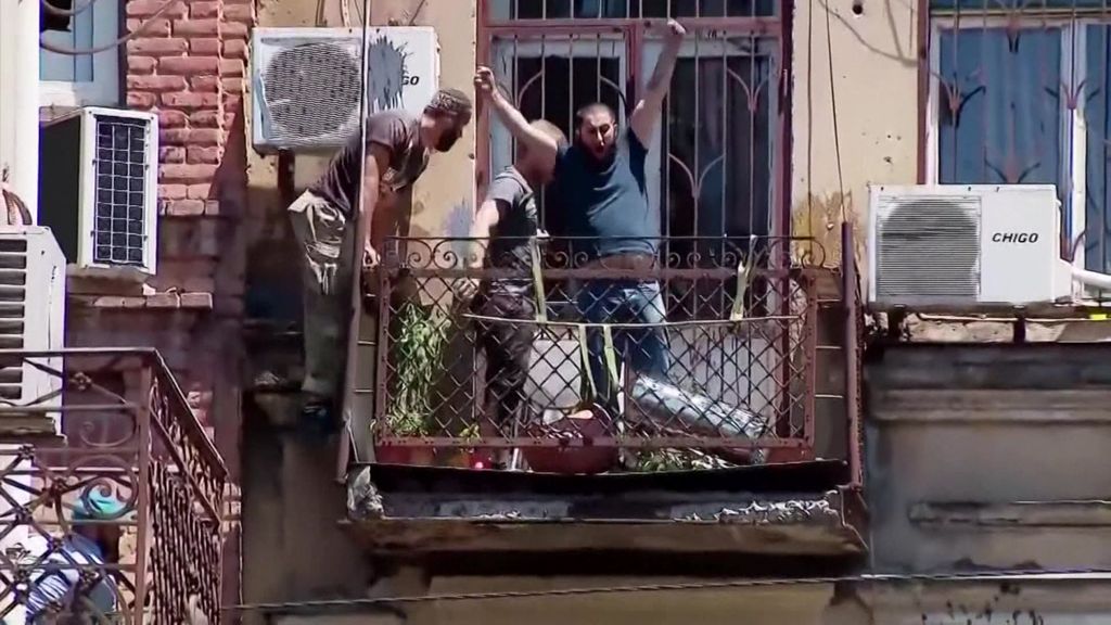 Video footage posted by LGBT activists showed men scaling their building to reach their balcony, where they tore down rainbow flags and were seen entering the office of Tbilisi Pride.