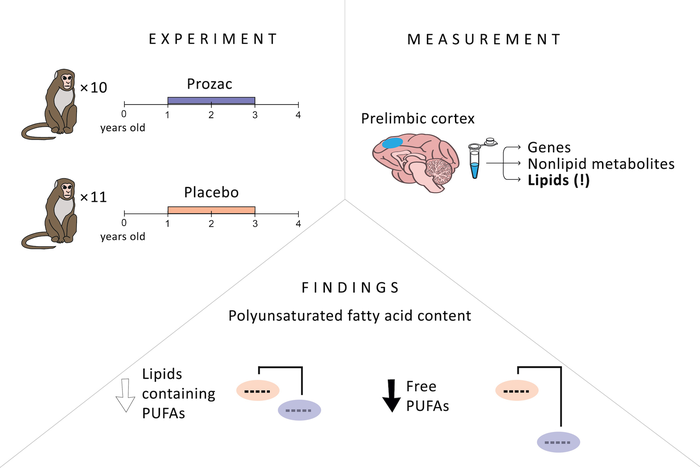 A series of earlier studies on the same group of animals carried out by the team’s collaborators investigated the effects of two-year fluoxetine administration to juvenile macaques on their impulsivity, sleep, social interaction, and the concentration of peripheral metabolites — the products of metabolism measured in the blood. This time, the researchers observed the drug’s effects on gene expression and brain metabolite content, primarily that of biomolecules called lipids.