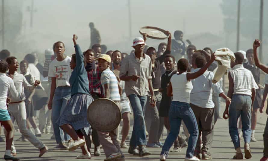 High-school students in an anti-apartheid protest, Soweto, Johannesburg, January 1986. Photograph: David Turnley/Corbis/VCG/Getty Images