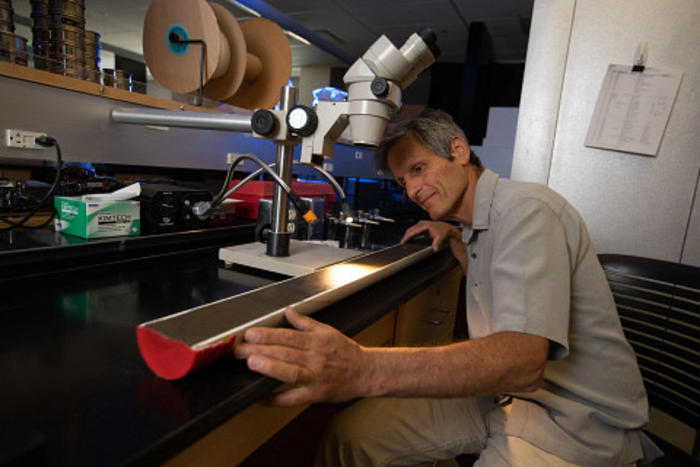IMAGE: NORTHERN ARIZONA UNIVERSITY REGENTS’ PROFESSOR DARRELL KAUFMAN EXAMINES A LAKE SEDIMENT CORE HE AND HIS STUDENTS RECENTLY COLLECTED FROM CENTRAL ALASKA. view more