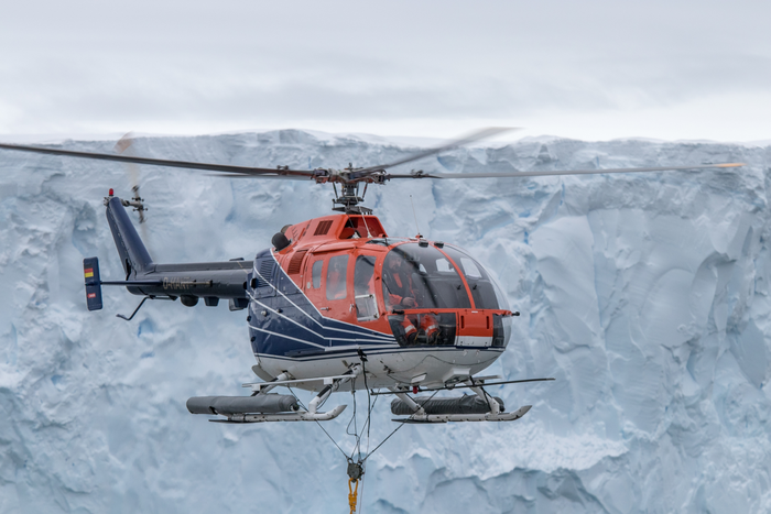 Peer-Reviewed PublicationIMAGE: GEOPHYSICAL MEASUREMENTS WITH A MAGNETOMETER BEING TOWED WITH RV POLARSTERN'S BOARD HELICOPTER. view more