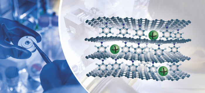 IMAGE: SODIUM IS ONE OF THE MOST ABUNDANT AND AFFORDABLE METALS IN THE WORLD. NOW RESEARCHERS AT CHALMERS UNIVERSITY OF TECHNOLOGY, SWEDEN, PRESENT A CONCEPT THAT ALLOWS SODIUM-ION BATTERIES TO MATCH THE CAPACITY OF TODAY'S LITHIUM-ION BATTERIES. USING A NOVEL TYPE OF GRAPHENE, THEY STACKED SPECIALLY DESIGNED GRAPHENE SHEETS WITH MOLECULES IN BETWEEN. THE NEW MATERIAL ALLOWS THE SODIUM IONS (IN GREEN) TO EFFICIENTLY STORE ENERGY. view more