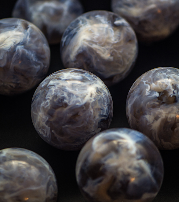 Imara and her collaborators created the models using data from simulations of star-forming clouds and a sophisticated 3D printing process in which the fine-scale densities and gradients of the turbulent clouds are embedded in a transparent resin. The resulting models—the first 3D-printed stellar nurseries—are highly polished spheres about the size of a baseball (8 centimeters in diameter), in which the star-forming material appears as swirling clumps and filaments.