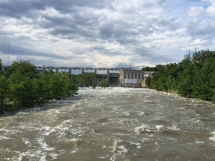 IMAGE: TOM MILLER DAM AND THE COLORADO RIVER AFTER HISTORIC RAINFALL IN OCTOBER 2018. THE UNIVERSITY OF TEXAS AT AUSTIN’S INSTITUTE FOR GEOPHYSICS AND THE CITY OF AUSTIN ARE STUDYING THE IMPACT OF FLOODING EVENTS AND URBANIZATION ON AUSTIN’S INNER-CITY LAKES. view more