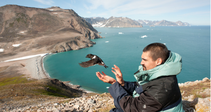 Flight of a little auk equipped with a GLS system (eastern Greenland).