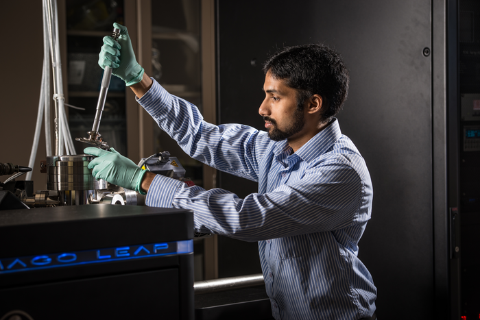 IMAGE: ARUN DEVARAJ AT WORK IN THE LAB. view more