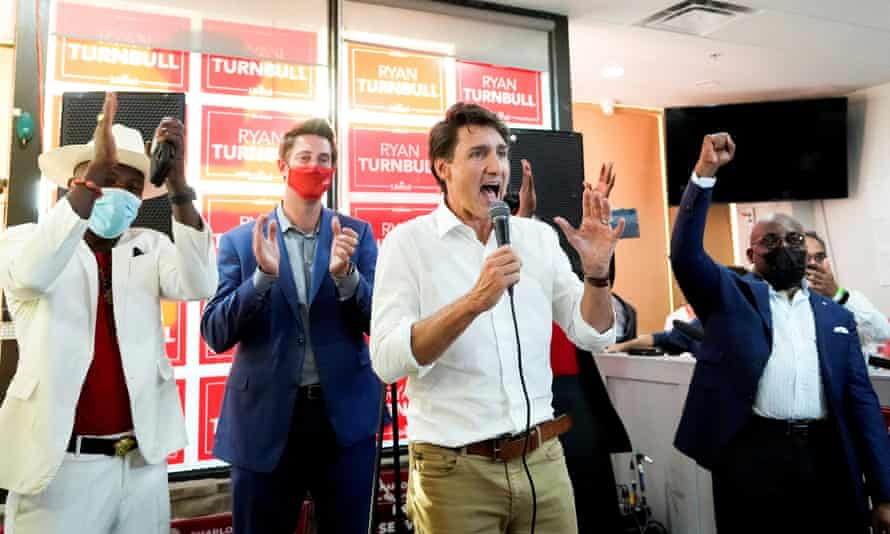 Justin Trudeau on the campaign trail on Friday. He has been criticised for calling a snap election during a pandemic. Photograph: Carlos Osorio/Reuters