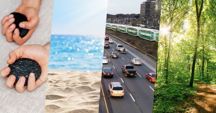 In the second experiment, participants were first handed a series of massage stones that were either heated to 45℃ or cooled to 9℃, and later exposed to sounds both quiet and noisy – such as birds, people, and waves at a beach.