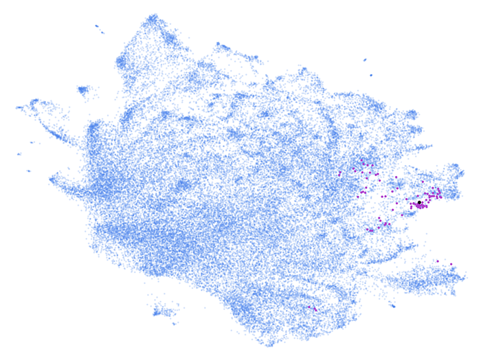 Peer-Reviewed PublicationIMAGE: MOUNT SINAI SCIENTISTS CREATED AN AI-BASED, AUTOMATED SYSTEM THAT LEARNS TO READ PATIENT DATA FROM ELECTRONIC HEALTH RECORDS. HERE THE SYSTEM IDENTIFIED DEMENTIA CASES (PURPLE DOTS) FROM A DATABASE OF NEARLY 2 MILLION PATIENTS (BLUE DOTS). view more