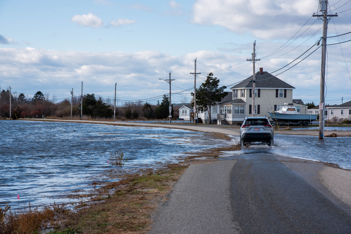 IMAGE: CAR ATTEMPTS TO PASS THROUGH A FREQUENTLY FLOODED ROAD IN HAMPTON, N.H. DURING ANOTHER BOUT OF FLOODING CAUSED BY A KING TIDE. view more