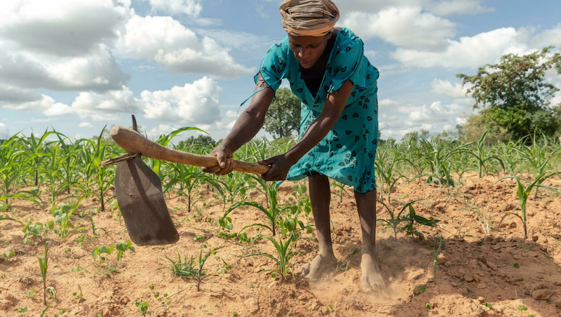 Vulnerable: Zimbabwean farmer Josephine Ganye struggling to grow corn in the drought that gripped the country last year