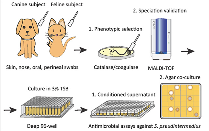 Peer-Reviewed PublicationIMAGE: TO IDENTIFY CANDIDATES FOR A NEW BACTERIOTHERAPY AGAINST SKIN INFECTION, RESEARCHERS FIRST SCREENED VARIOUS BACTERIA FROM DOGS AND CATS AND CO-CULTURED THEM WITH <EM>S. PSEUDINTERMEDIUS</EM> IN LIQUID AND AGAR ANTIMICROBIAL ASSAYS. view more