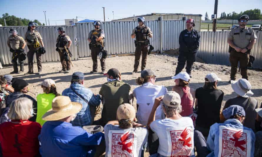 On 29 July, Houska said Line 3 opponents, who identify as water protectors, attempted to stop the drilling, under skies that were thick with wildfire smoke from the west. “We were met with rubber bullets and Mace by a big line of police officers from multiple counties shooting at us at point blank range,” she said.