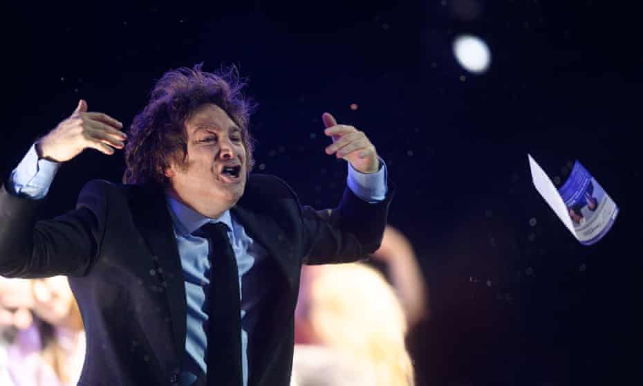 The party’s wild-haired leader, Javier Milei, has refused to be vaccinated against Covid, denies climate change is real, and describes himself as a “lion”.