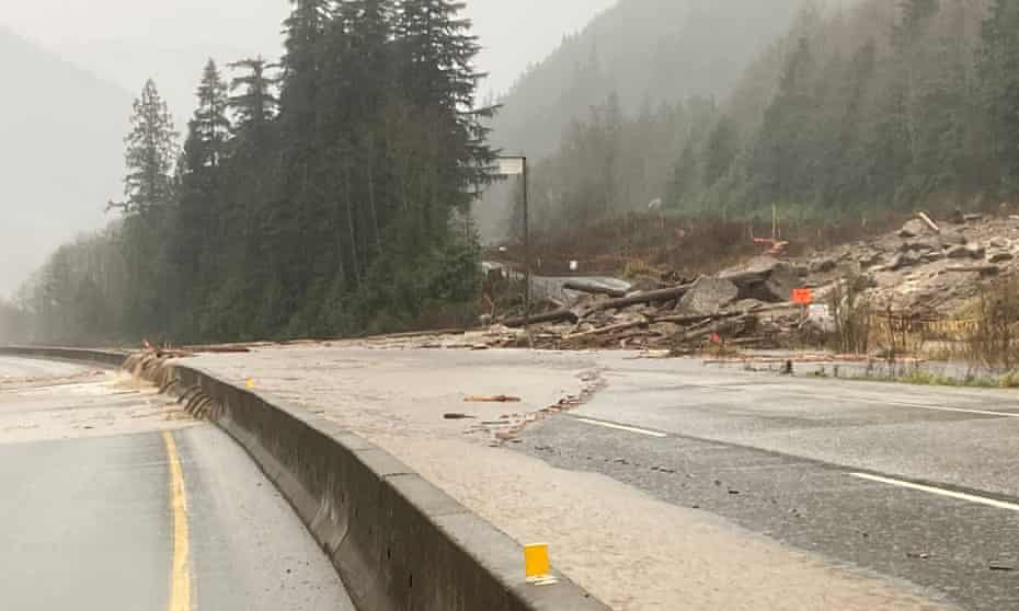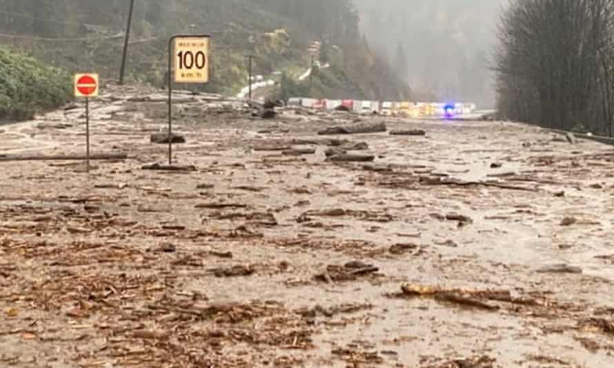A view of the Coquihalla Highway following mudslides and flooding in British Columbia, Canada, on Sunday. Photograph: British Columbia Transportation/Reuters