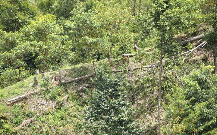 Logging in forest in Nisam Antara, Indonesia's Aceh province, October 2021.