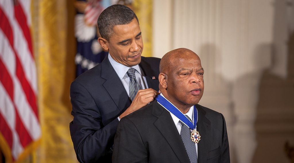 President Barack Obama awards the 2010 Presidential Medal of Freedom to Congressman John Lewis in a ceremony in the East Room of the White House, Feb. 15, 2011. (Official White House Photo by Lawrence Jackson)